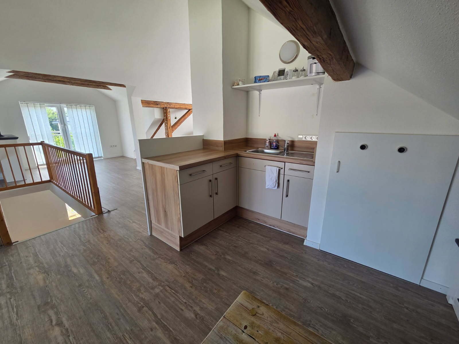 Vom Obergeschoss gelangt man ins Dachgeschoss, hier befindet sich eine größere 1,5 Zimmer Wohnung, mit ca. 70 qm, diese ist wie folgt aufgeteilt: