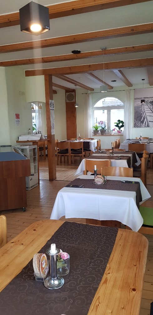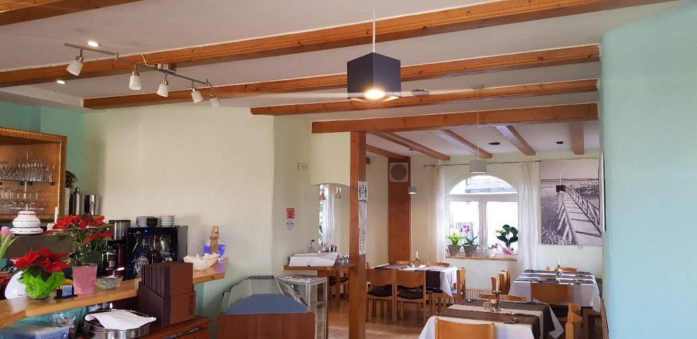- im Gastraum sichtbares Gebälk vorhanden ( nicht tragend), ebenso anteilig indirekte Beleuchtung vorhanden