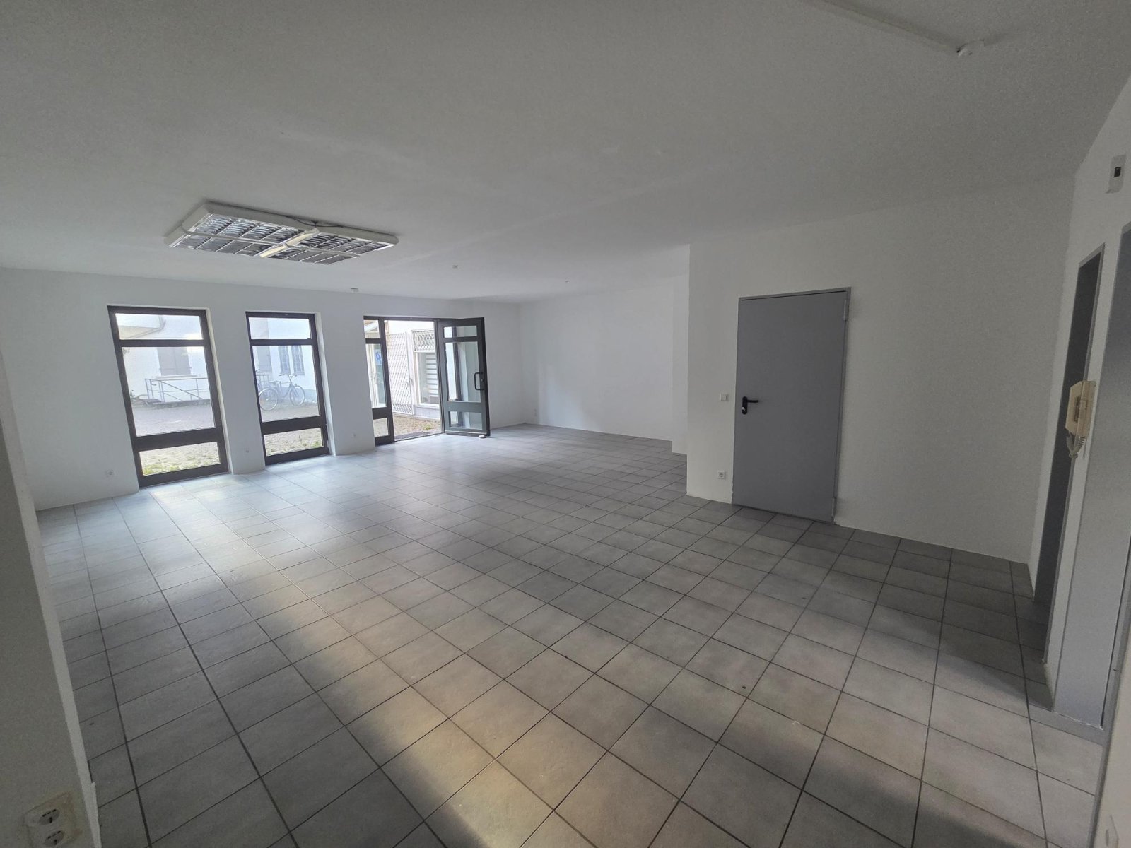 - Ein größerer gewerblicher Raum, mit größeren bodentiefen Fenstern